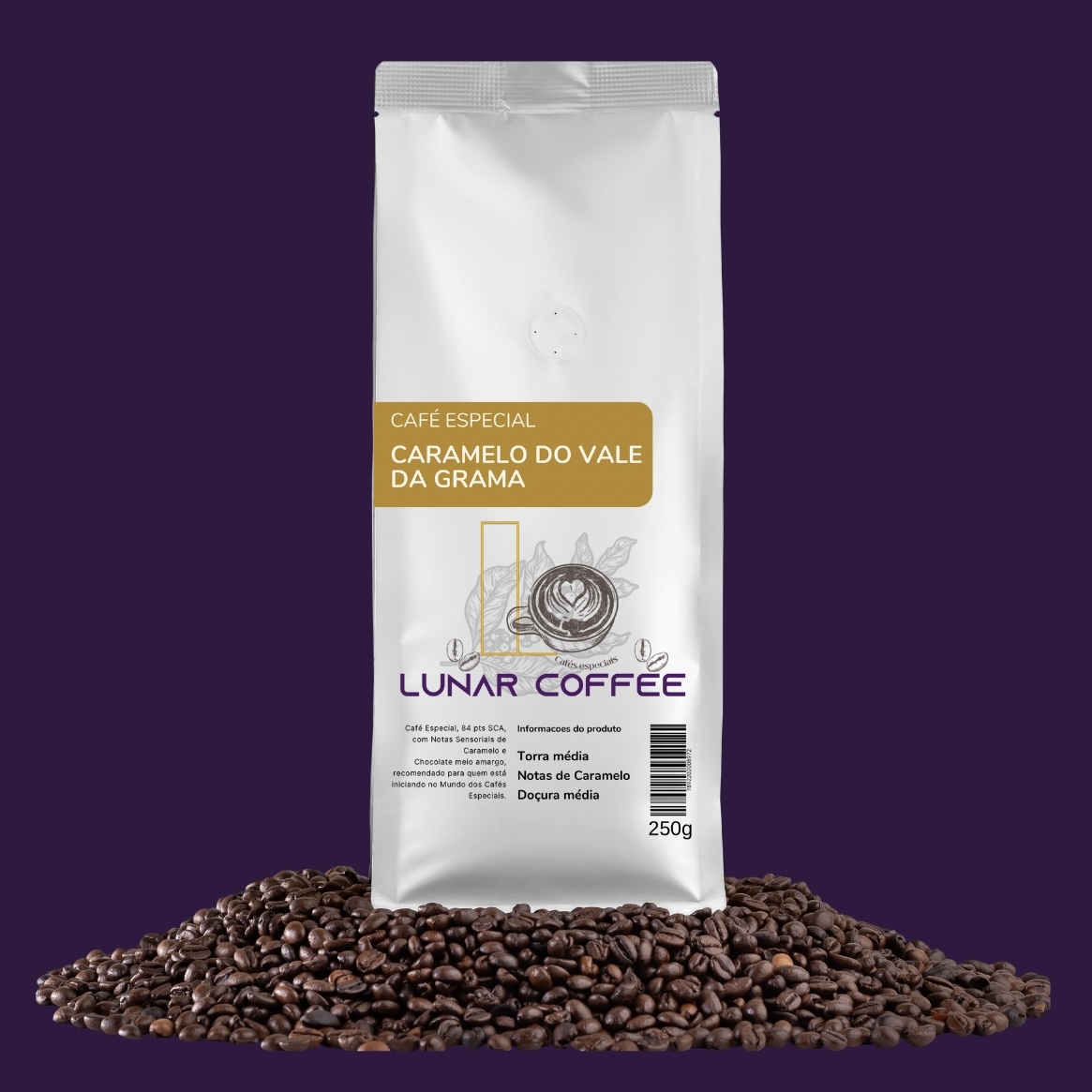 O Café Especial Caramelo, um café de 84 pontos com notas de caramelo. Ele tem um grau de torra ideal para espresso, mas pode ser bem apreciado em métodos coados e filtrados.